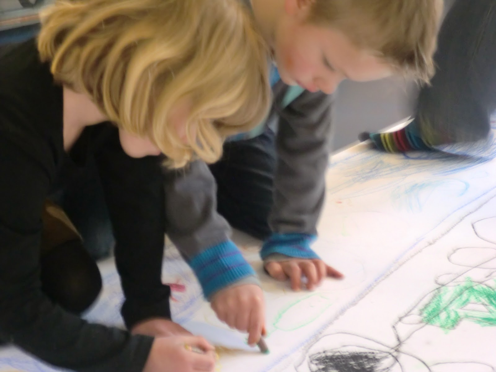 Met groep 4 werden huizen getekend met prachtige glas-in-lood ramen en echte gordijnen. Het zag er zó gezelling uit. Zou je er zelf kunnen wonen? "Nee", antwoordt één van de meisjes. "Want de voordeur is veel te klein. Maar mijn pop kan er wel wonen". Kijk eens hoe hard er gewerkt werd!